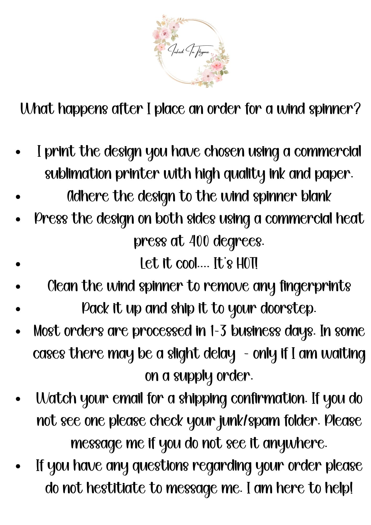 Introducing our mesmerizing Wind Spinner Collection at Inked In Thyme. Elevate your outdoor space with these captivating kinetic sculptures that dance with the breeze. Crafted with precision and artistic flair, each wind spinner in our collection is a testament to our dedication to quality craftsmanship. From graceful, flowing designs to dynamic, geometric patterns, our selection offers a variety of styles to suit any garden or patio. These enchanting spinners not only add visual intrigue but also create a soothing, meditative atmosphere. Explore our Wind Spinner Collection and bring a touch of dynamic elegance to your outdoor oasis. Discover the perfect spinner to harmonize with nature's gentle rhythm, only at Inked In Thyme.