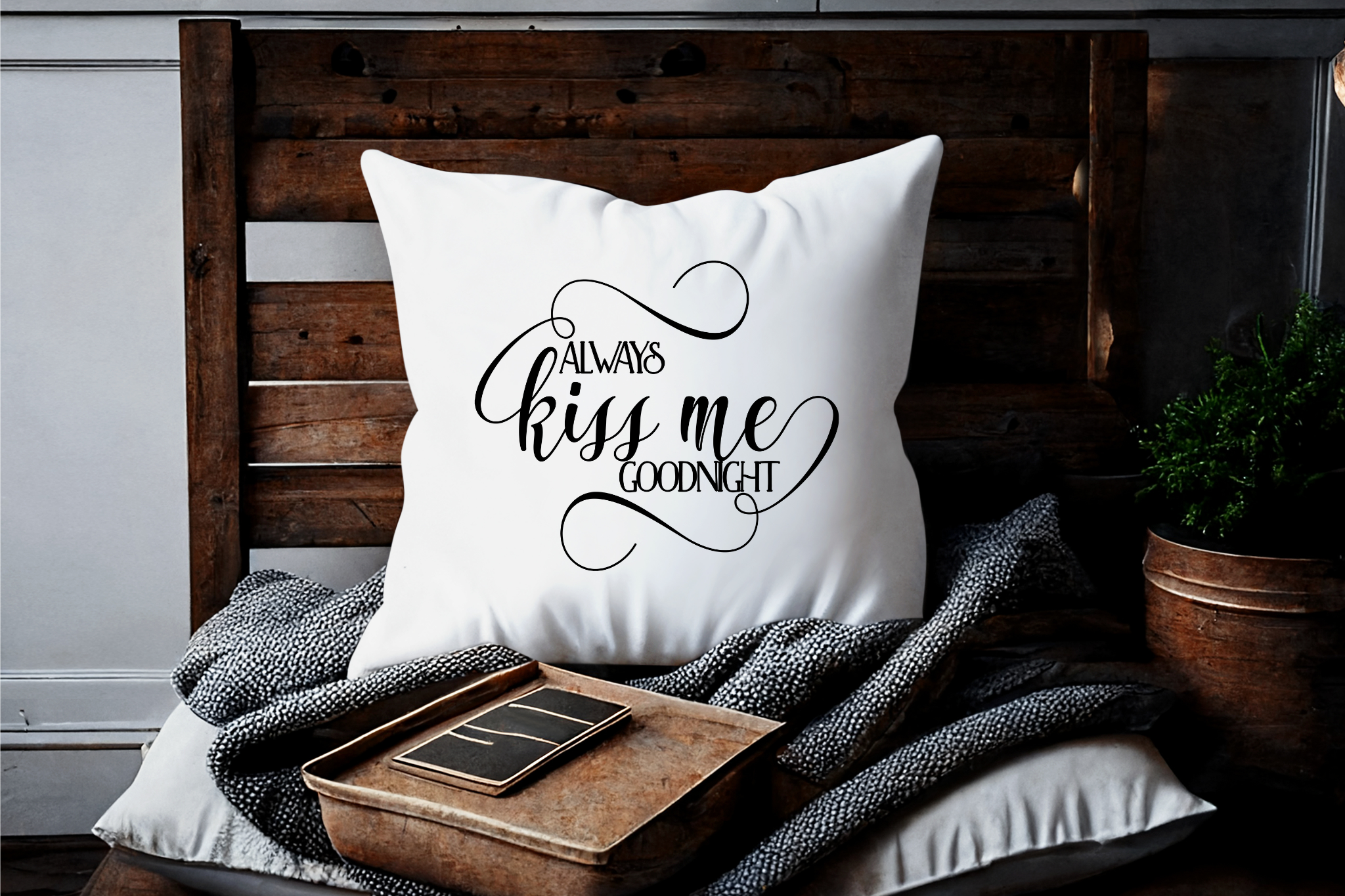 Introducing our enchanting "Always Kiss Me Goodnight" Pillow Cover—a romantic and heartwarming addition to your bedroom decor that sets the tone for love, warmth, and sweet dreams.