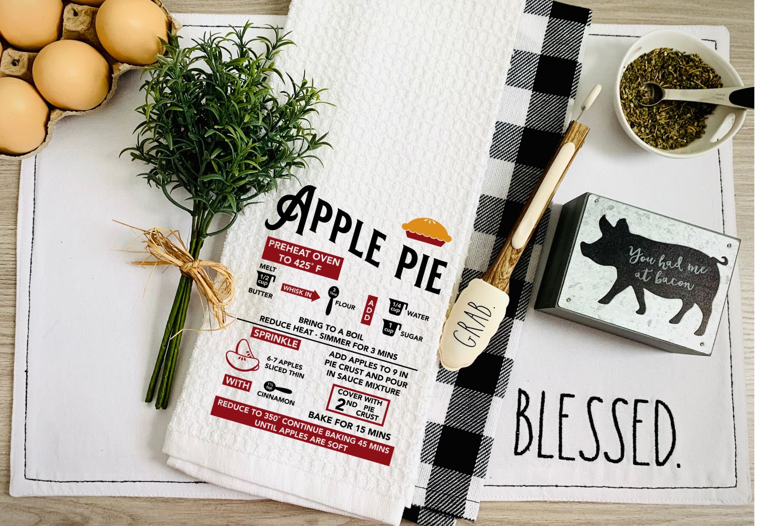 Apple Pie Recipe Kitchen Towel