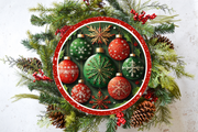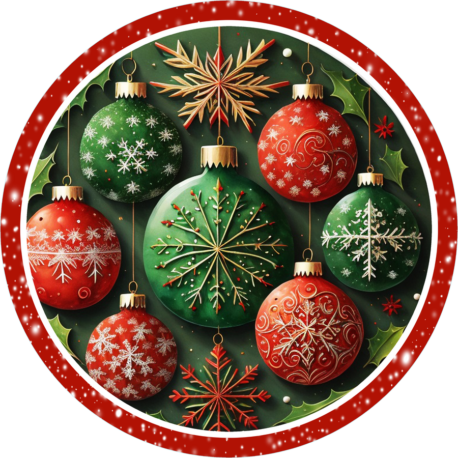 Red & Green Ornaments Wreath Sign