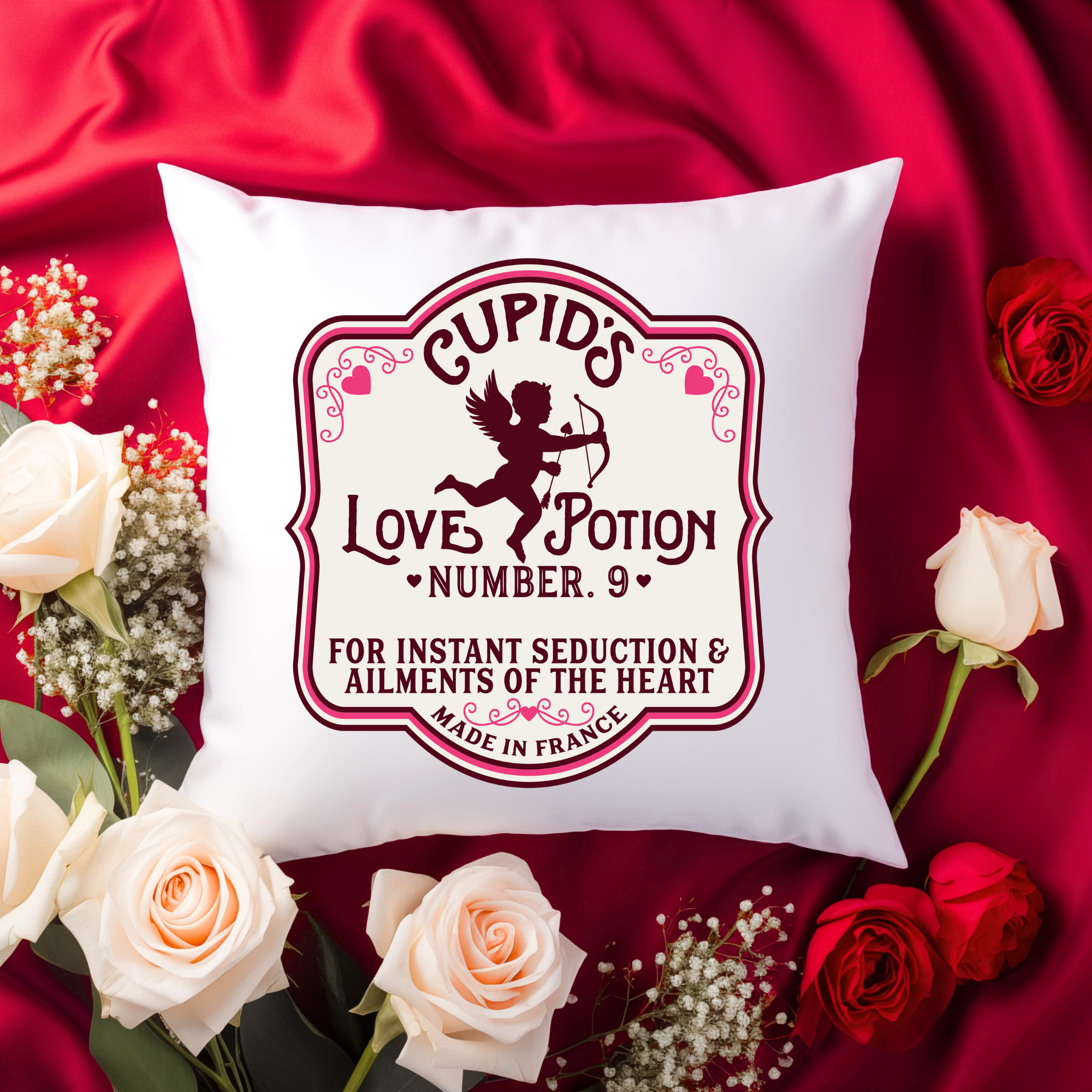 Cupid's Love Potion Number 9 Pillow Cover.