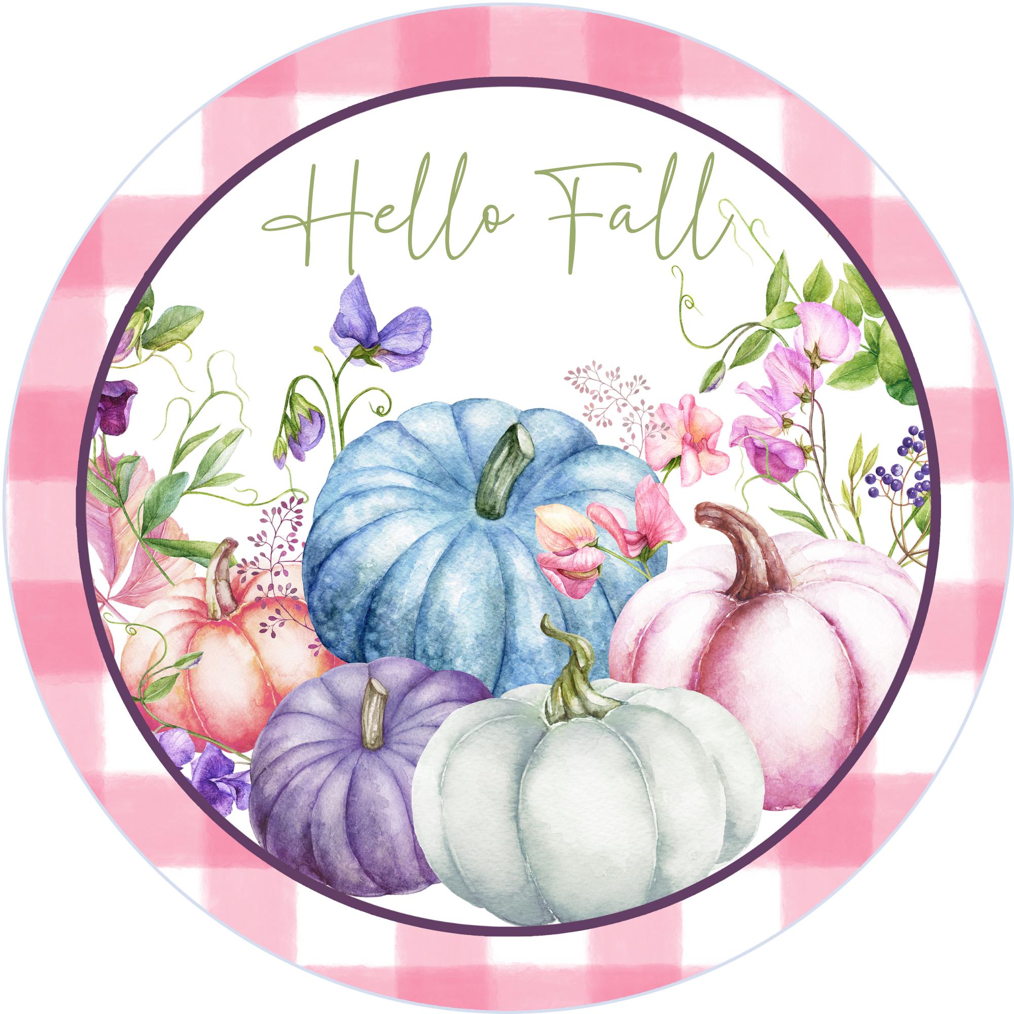 Hello Fall Pink Pumpkins Wreath Sign, round wreath sign, Sign for wreath, Fall Thanksgiving Wreath Attachment