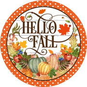 Hello Fall Pumpkins Wreath Sign, round wreath sign, Sign for wreath, Fall Thanksgiving Wreath Attachment