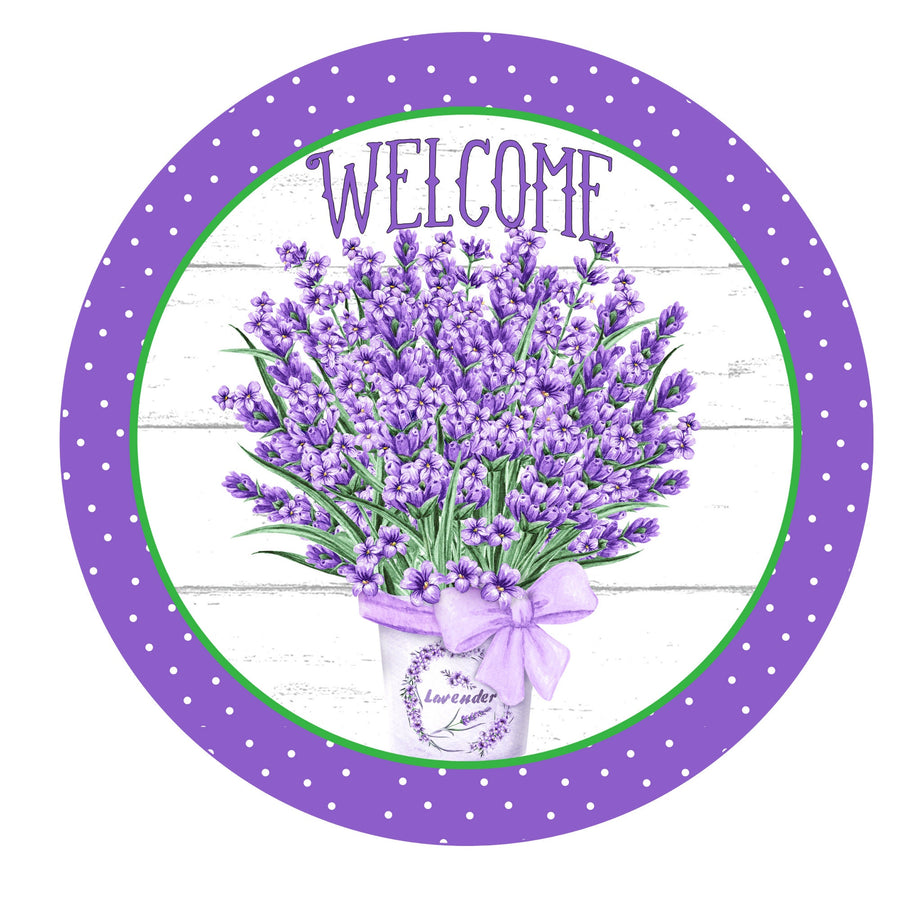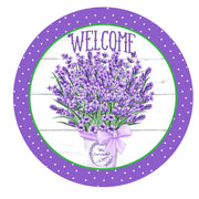 Welcome Lavender Bouquet Wreath Sign, round wreath sign, Sign for wreath, door hanger, door decor,